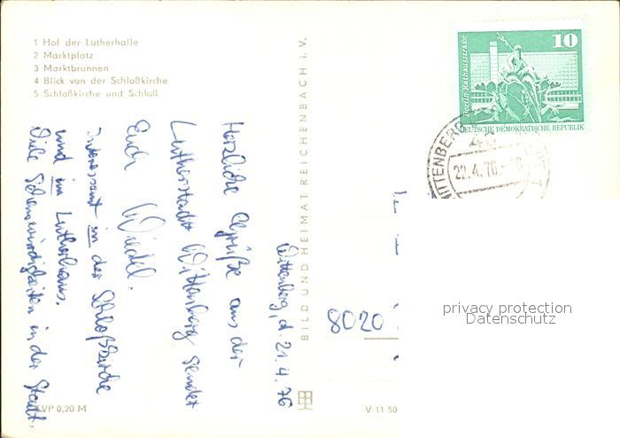72407989 alte Postkarte Wittenberg Lutherstadt Hof Lutherhalle Marktplatz Marktbrunnen Schlosskirche Schloss postalisch gelaufen Erhaltung siehe scans KatCode: 11110015091375