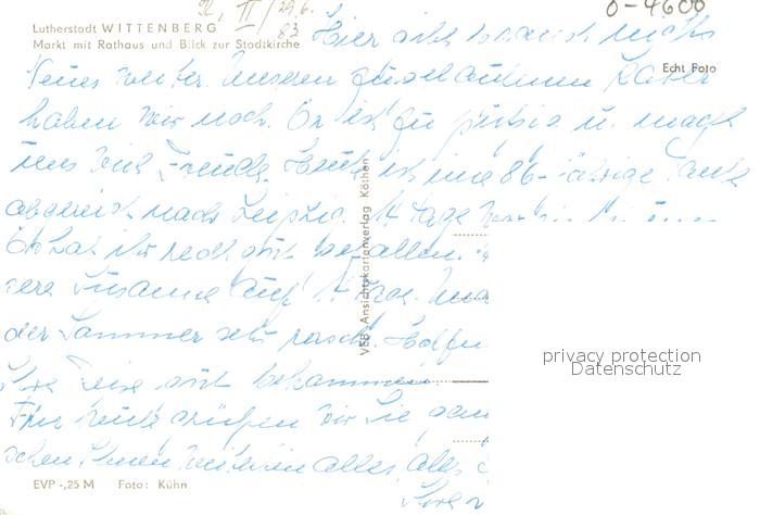 72984972 alte Postkarte Wittenberg Lutherstadt Markt mit Rathaus und Stadtkirche postalisch gelaufen Erhaltung siehe scans [WerneD78] KatCode: 11110015091375