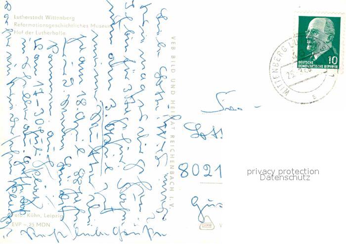 72648735 alte Postkarte Wittenberg Lutherstadt Reformationsgeschichtliches Museum Hof der Lutherhalle postalisch gelaufen Erhaltung siehe scans [LiesaD40] KatCode: 11110015091375