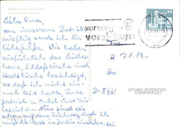 72257224 alte Postkarte Wittenberg Lutherstadt Schloss mit Schlosskirche postalisch gelaufen Erhaltung siehe scans KatCode: 11110015091375
