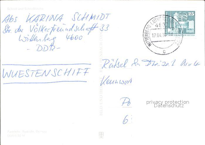 72401288 alte Postkarte Wittenberg Lutherstadt Schloss Schlosskirche postalisch gelaufen Erhaltung siehe scans KatCode: 11110015091375