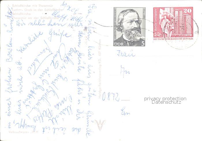 72328583 alte Postkarte Wittenberg Lutherstadt Schlosskirche Luthergrab Thesentuer postalisch gelaufen Erhaltung siehe scans KatCode: 11110015091375