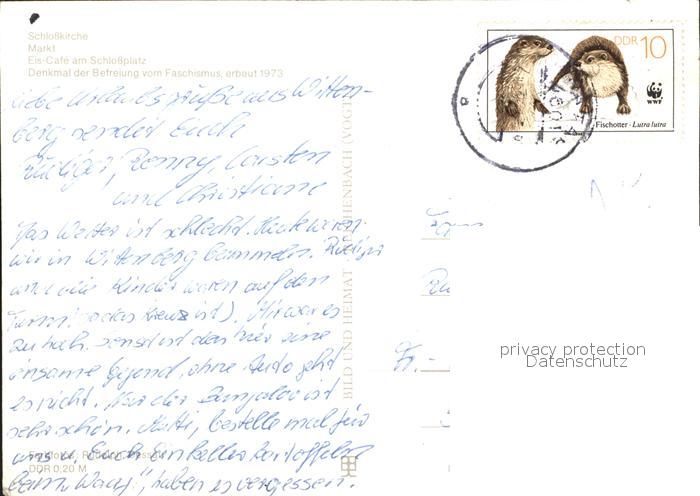 72373464 alte Postkarte Wittenberg Lutherstadt Schlosskirche Markt Denkmal Befreiung vom Faschismus postalisch gelaufen Erhaltung siehe scans KatCode: 11110015091375