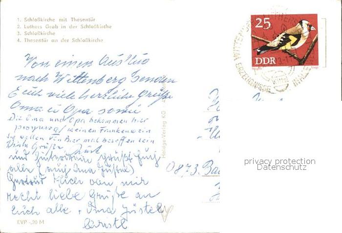 72234152 alte Postkarte Wittenberg Lutherstadt Schlosskirche Thesentuer Luthers Grab postalisch gelaufen Erhaltung siehe scans KatCode: 11110015091375