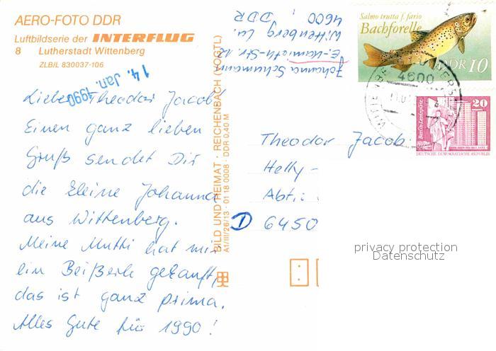 72824222 alte Postkarte Wittenberg Lutherstadt Stadtzentrum Kirche Luftbildserie der Interflug postalisch gelaufen Erhaltung siehe scans [FriedD77] KatCode: 11110015091375