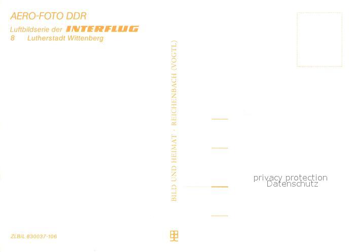 73707782 Wittenberg Lutherstadt Stadtzentrum Marktplatz Kirche Luftbildserie der Interflug postalisch nicht gelaufen Fliegeraufnahme Erhaltung siehe scans [FriedD77] KatCode: 11110015091375