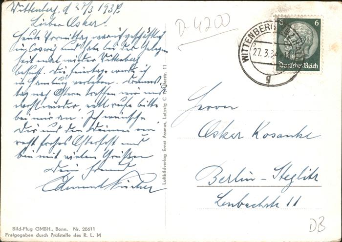 41402449 Wittenberg Oberhausen Fliegeraufnahme Schloss mit Kirche KatCode 11110005119000