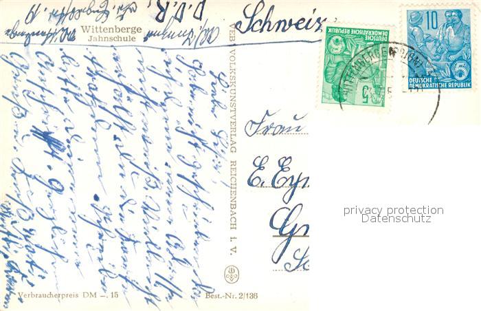 73293314 alte Postkarte Wittenberge Prignitz Jahnschule postalisch gelaufen Erhaltung siehe scans [WerneD78] KatCode: 11110012070424