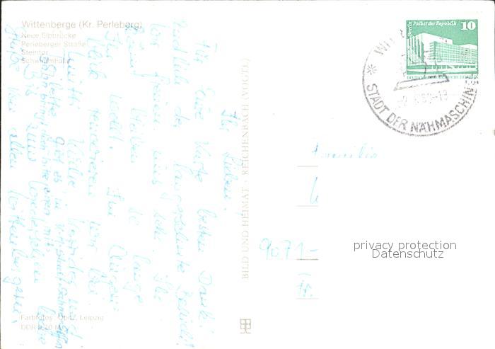 72335200 alte Postkarte Wittenberge Prignitz Neue Elbbruecke Perleberger Strasse Steintor Schwimmhalle postalisch gelaufen Erhaltung siehe scans KatCode: 11110012070424