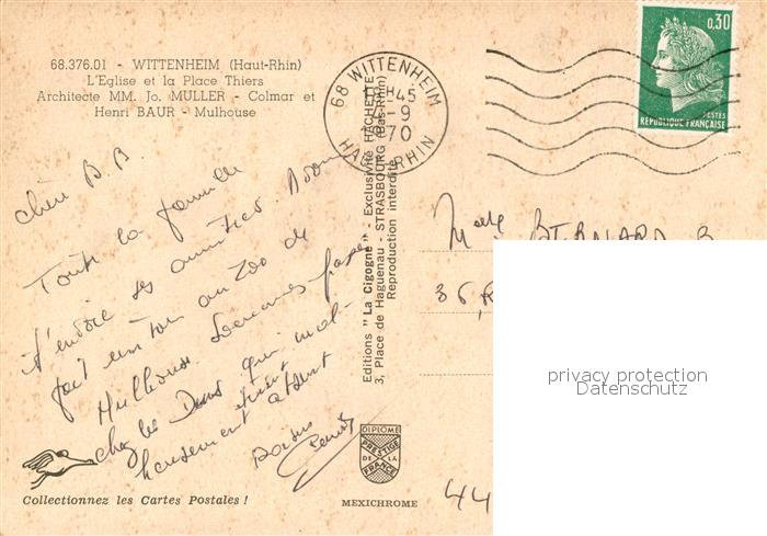 carte postale Wittenheim Eglise et Place Thiers postalisch gelaufen Erhaltung siehe scans [FriedD77]