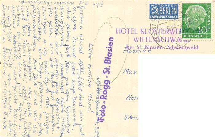 73973862 alte Postkarte Wittenschwand Hotel Klosterweier postalisch gelaufen Erhaltung siehe scans [WerneD78] KatCode: 11110008337027