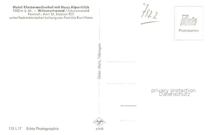42941047 Wittenschwand Hotel Klosterweiherhof postalisch nicht gelaufen Erhaltung siehe scans [AndreD76] KatCode: 11110008337027