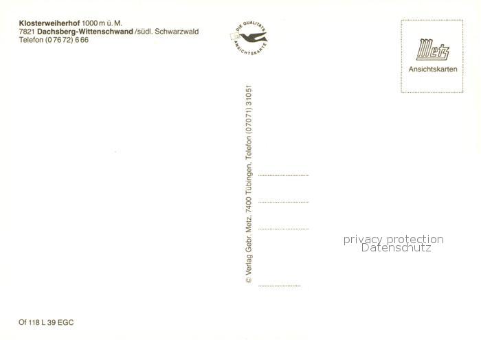 73543117 Wittenschwand Hotel Klosterweiherhof Restaurant postalisch nicht gelaufen Erhaltung siehe scans [FriedD77] KatCode: 11110008337027