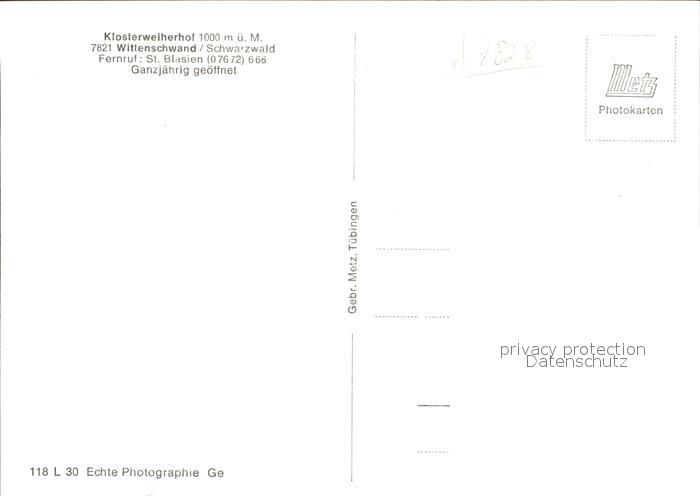 41811764 Wittenschwand klosterweiherhof Winter postalisch nicht gelaufen Erhaltung siehe scans KatCode: 11110008337027