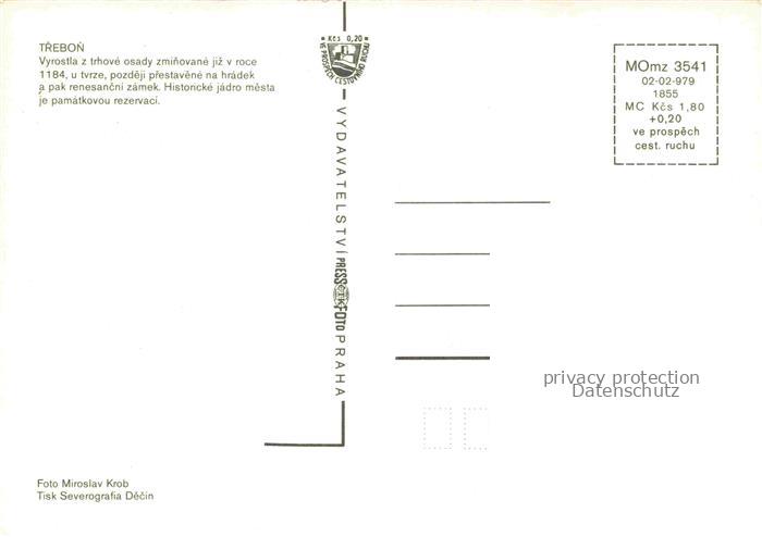 74156907 Wittingau Trebon CZ Marktplatz Brunnen Uhrturm Renaissance-Schloss Stadttor Altstadt Denkmalschutzgebiet postalisch nicht gelaufen Erhaltung siehe scans [Karloger] KatCode: 11520