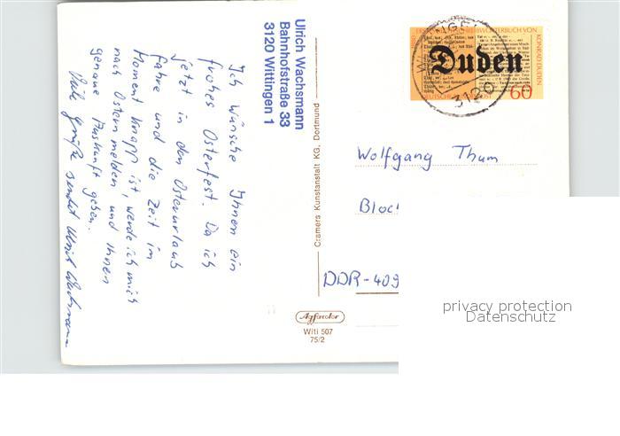 72530341 alte Postkarte Wittingen Niedersachsen Cafe Schultheiss Gemeindehaus Krankenhaus Langestrasse Neuer Stadtteil Langestrasse postalisch gelaufen Erhaltung siehe scans [WerneD78 kt108box] KatCode: 11110003151040
