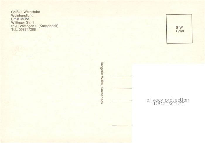 73642253 Wittingen Niedersachsen Weinhaus Muehe Cafe und Weinstube postalisch nicht gelaufen Erhaltung siehe scans [WerneD78] KatCode: 11110003151040