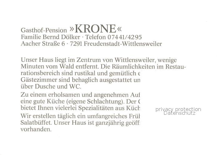 73658671 Wittlensweiler Gasthof Pension Krone postalisch nicht gelaufen Werbekarte (keine Postkarte) Erhaltung siehe scans [FriedD77] KatCode: 11110008237028