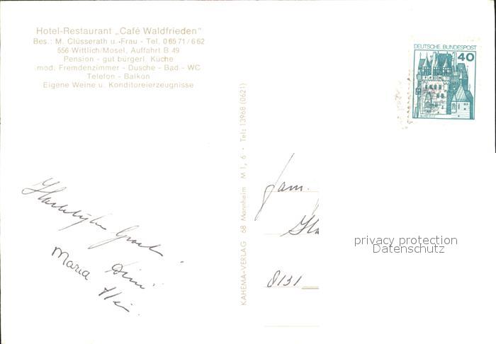72235647 alte Postkarte Wittlich Hotel Restaurant Waldfrieden Gastraum postalisch gelaufen Erhaltung siehe scans KatCode: 11110007231134