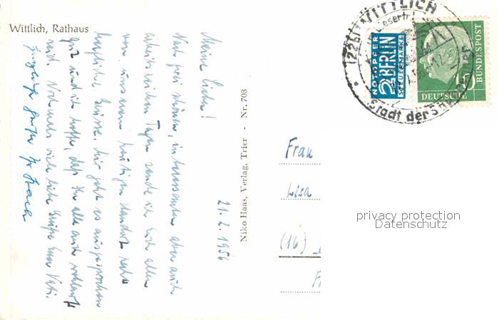 72786221 alte Postkarte Wittlich Rathaus postalisch gelaufen Erhaltung siehe scans [FriedD77] KatCode: 11110007231134