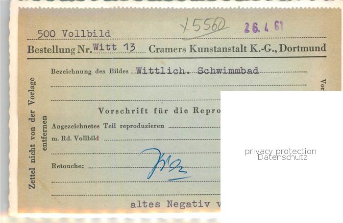 42978684 Wittlich Schwimmbad postalisch nicht gelaufen Verlagsrohabzug (keine Postkartenrückseite) Erhaltung siehe scans [AndreD76] KatCode: 11110007231134