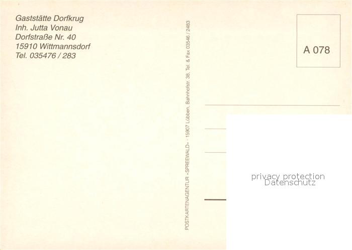 73713345 Wittmannsdorf-Bueckchen Gaststaette Dorfkrug postalisch nicht gelaufen Erhaltung siehe scans [FriedD77] KatCode: 11110012061329