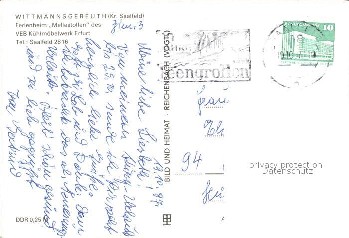 72298312 alte Postkarte Wittmannsgereuth Ferienheim Mellestollen postalisch gelaufen Erhaltung siehe scans KatCode: 11110016073108