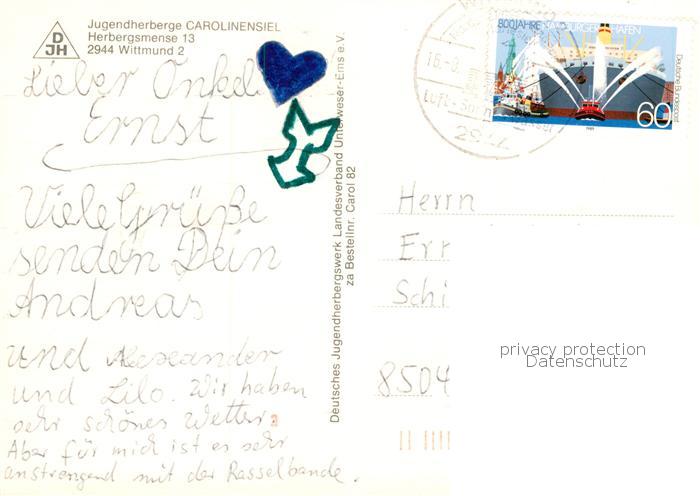 73874245 Wittmund Jugendherberge Carolinensiel Speiseraum Grillplatz Partie im Hafen postalisch nicht gelaufen Erhaltung siehe scans [WerneD78] KatCode: 11110003462019