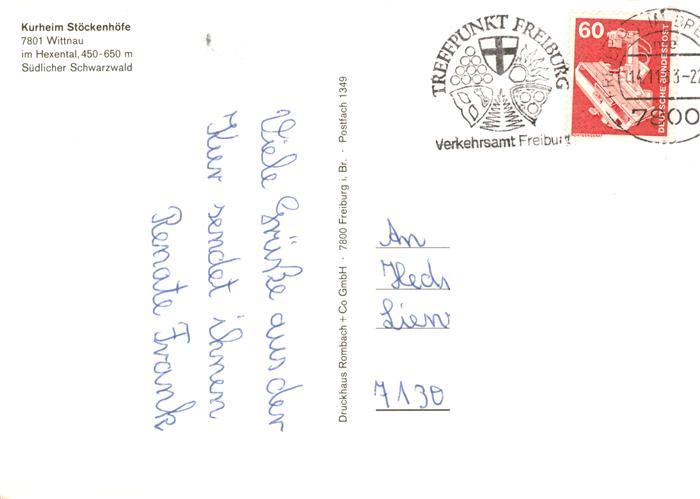 73932040 alte Postkarte Wittnau Breisgau Schwarzwald Kurheim Stoeckenhoefe postalisch gelaufen Erhaltung siehe scans [FriedD77] KatCode: 11110008315125
