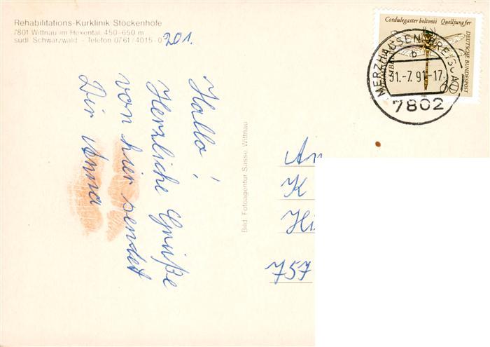 73931901 alte Postkarte Wittnau Breisgau Schwarzwald Rehabilitations-Kurklinik Stoeckenhoefe der LVA Baden postalisch gelaufen Erhaltung siehe scans [FriedD77] KatCode: 11110008315125