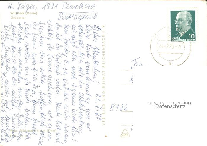 72064340 alte Postkarte Wittstock Groepertor postalisch gelaufen Erhaltung siehe scans KatCode: 11110012068468