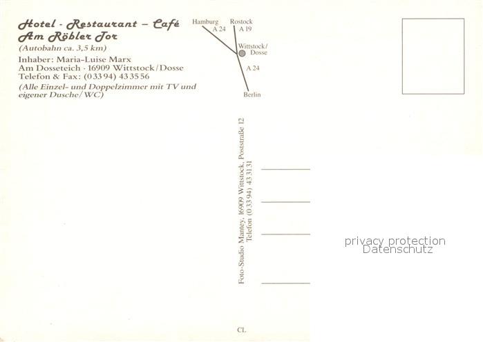 73547462 Wittstock Hotel Restaurant Am Roebler Tor postalisch nicht gelaufen Erhaltung siehe scans [WerneD78] KatCode: 11110012068468