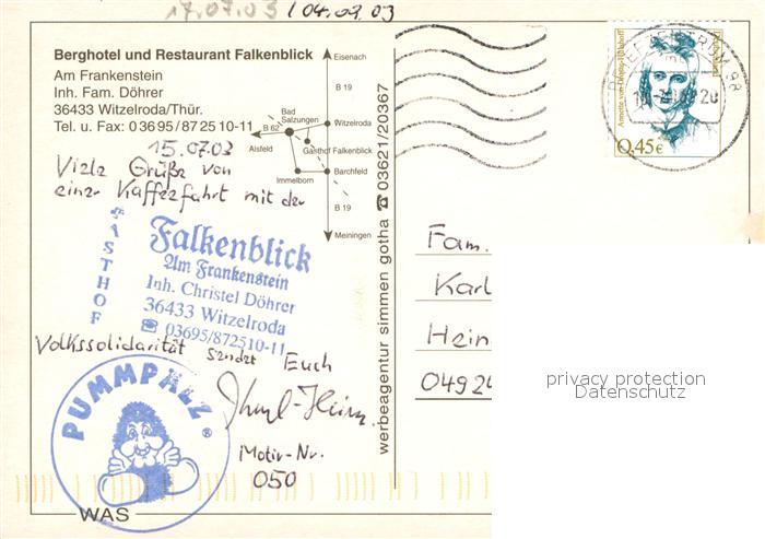 73662879 alte Postkarte Witzelroda Berghotel Restaurant Falkenblick postalisch gelaufen Erhaltung siehe scans [LiesaD40] KatCode: 11110016063094