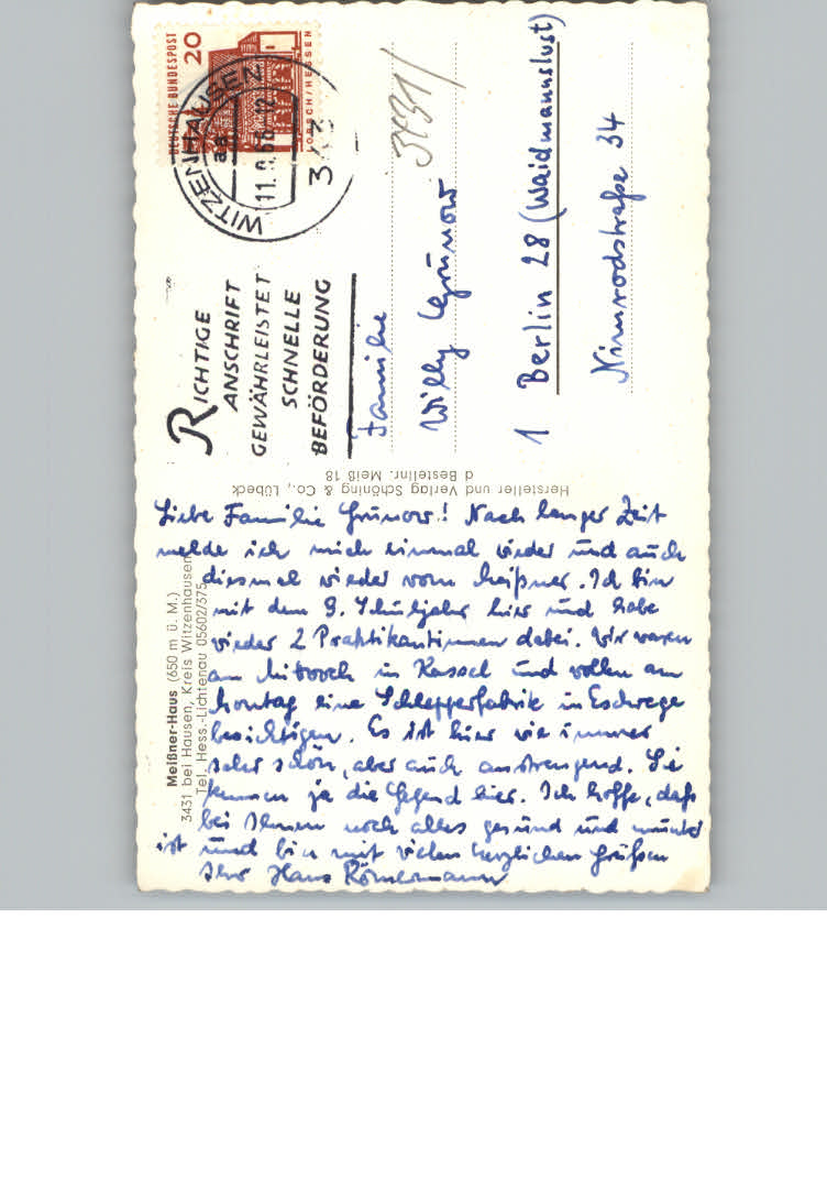31129537 Witzenhausen postalisch nicht gelaufen KatCode: 11110006636016