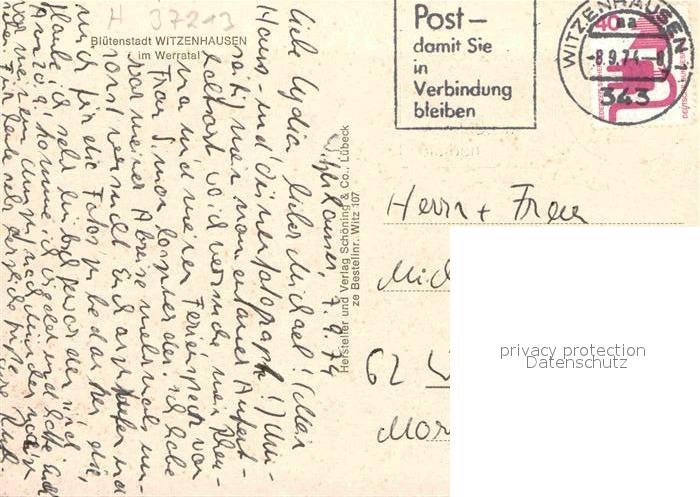 72668383 alte Postkarte Witzenhausen Panorama postalisch gelaufen Erhaltung siehe scans [AndreD76] KatCode: 11110006636016