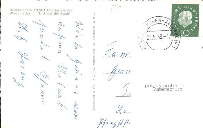 72518526 alte Postkarte Witzenhausen Werrabruecke postalisch gelaufen Erhaltung siehe scans KatCode: 11110006636016