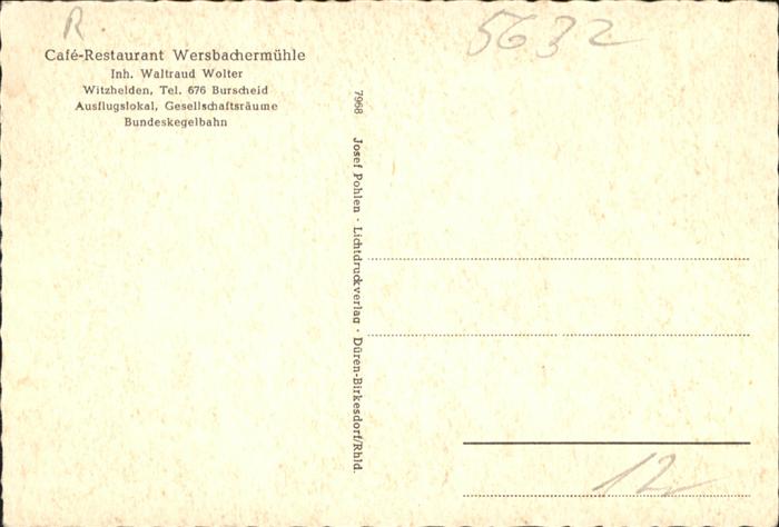 40932915 Witzhelden Cafe Restaurant Wersbachermühle Burscheid KatCode 11110005378016