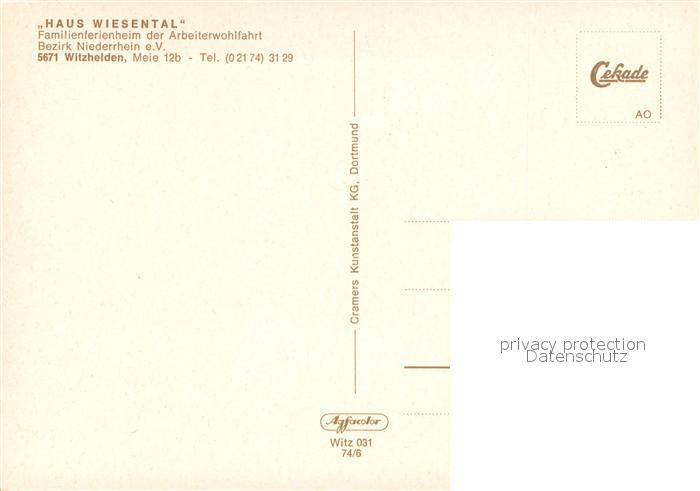 73678510 Witzhelden Haus Wiesental Ferienheim der Arbeiterwohlfahrt postalisch nicht gelaufen Erhaltung siehe scans [LiesaD40] KatCode: 11110005378016