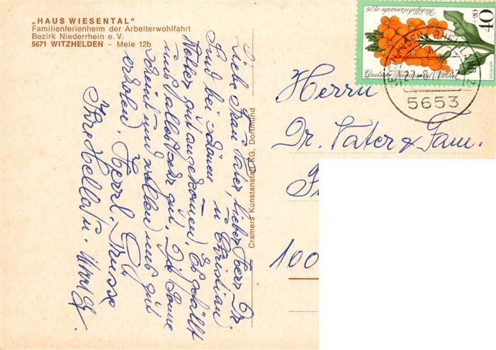 73880573 alte Postkarte Witzhelden Leichlingen Haus Wiesental Familienferienheim der AWO postalisch gelaufen Erhaltung siehe scans [WerneD78] KatCode: 11110005378016