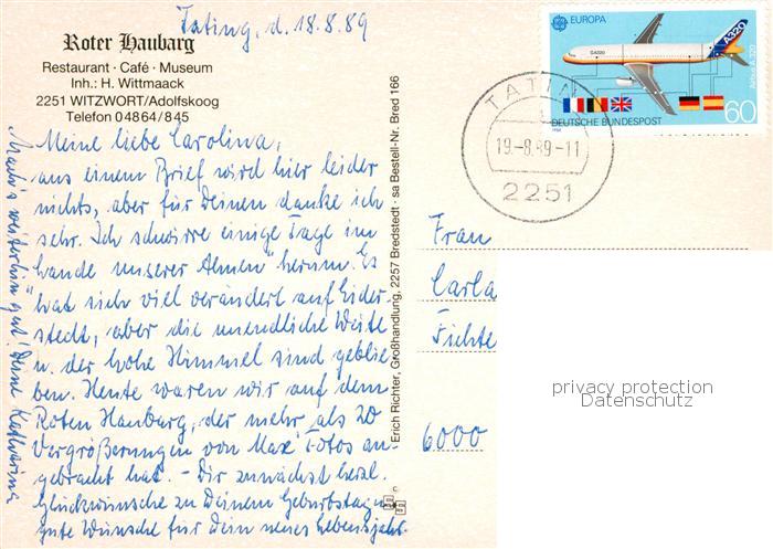 73863921 alte Postkarte Witzwort Adolfskoog Roter Haubarg postalisch gelaufen Erhaltung siehe scans [WerneD78] KatCode: 11110001054161