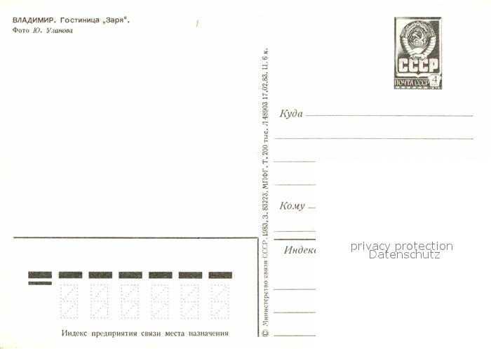 Wladimir Russland Hotel Sarja postalisch nicht gelaufen Ganzsache (eingedruckte Briefmarke) Erhaltung siehe scans [NatalD47]