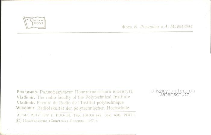 Wladimir Russland Radiofakultaet polytechnischen Hochschule postalisch nicht gelaufen Erhaltung siehe scans