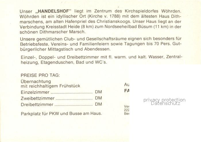 73086805 Woehrden Dithmarschen Hotel Handelshof postalisch nicht gelaufen Werbekarte (keine Postkarte) Erhaltung siehe scans [KathaD81] KatCode: 11110001051113