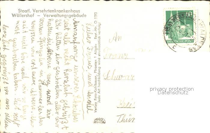 72365067 alte Postkarte Woellershof Neustadt Waldnaab Versehrtenkrankenhaus Woellershof Verwaltungsgebaeude postalisch gelaufen Erhaltung siehe scans KatCode: 11110009374158