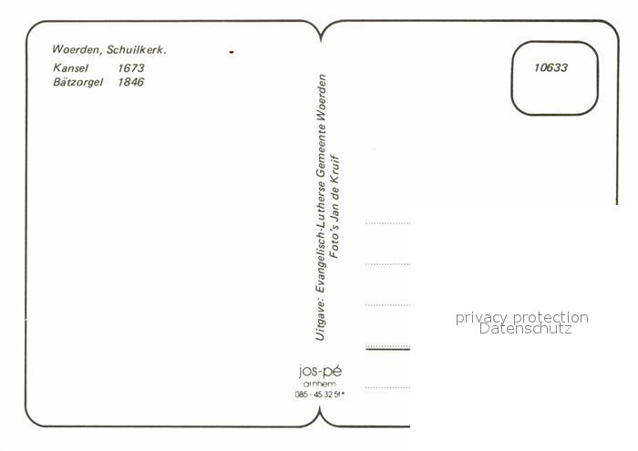 Woerden Schuilkerk Kansel Orgel Kirche Kanzel Orgel postalisch nicht gelaufen Erhaltung siehe scans [FriedD77]
