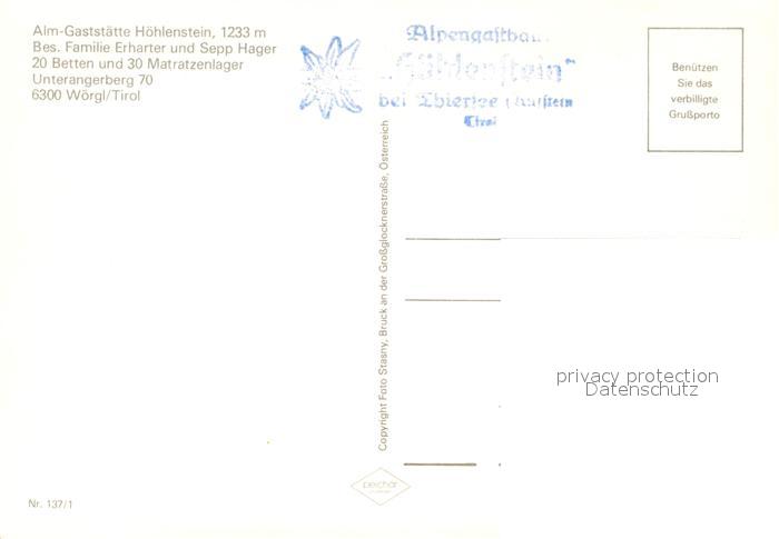 73341587 Woergl Tirol Almgaststaette Hoehlenstein Kreuz Almvieh Kuh Harfe Musikinstrument postalisch nicht gelaufen Erhaltung siehe scans [FriedD77] KatCode: 11390335070513