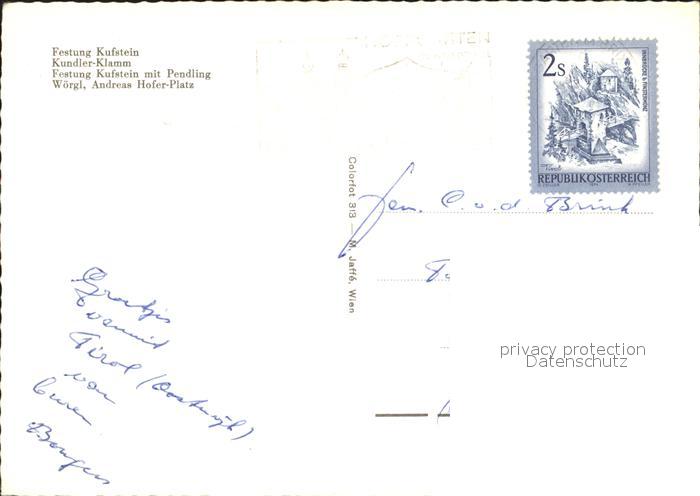 72254329 alte Postkarte Woergl Tirol Festung Kufstein Kundler Klamm Andreas Hofer Platz postalisch gelaufen Erhaltung siehe scans KatCode: 11390335070513