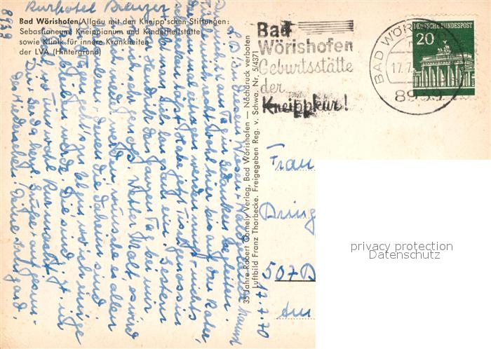 73005399 alte Postkarte Woerishofen Bad Fliegeraufnahme postalisch gelaufen Erhaltung siehe scans [KathaD81] KatCode: 11110009778116