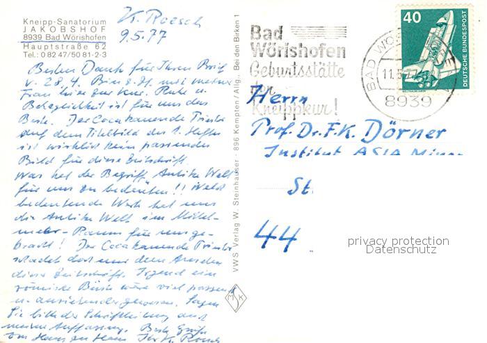 73168686 alte Postkarte Woerishofen Bad Kneipp Sanatorium Jakobshof postalisch gelaufen Erhaltung siehe scans [KathaD81] KatCode: 11110009778116
