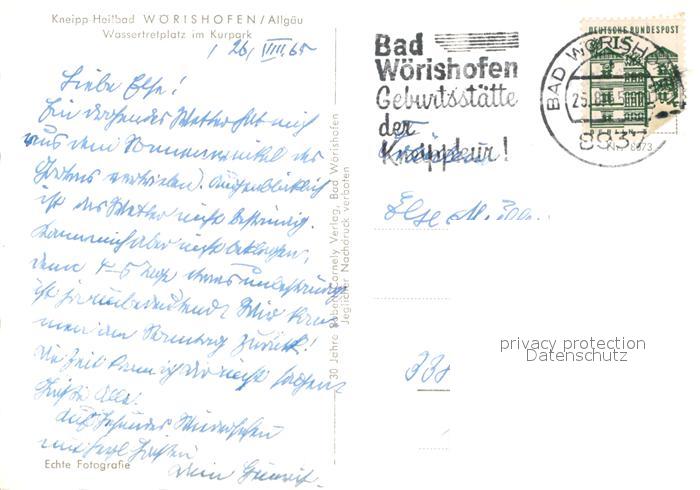 72920398 alte Postkarte Woerishofen Bad Wassertretplatz im Kurpark postalisch gelaufen Erhaltung siehe scans [LiesaD40] KatCode: 11110009778116